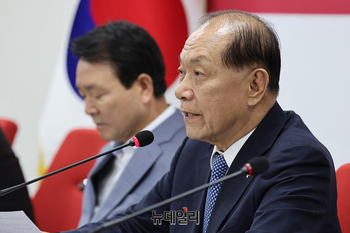 황우여 국민의힘 비상대책위원장이 4일 오전 서울 여의도 국민의힘 중앙당사에서 열린 '2024 총선 지원 연예인 자원봉사단 간담회'에서 인사말을 하고 있다.
