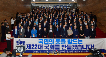 더불어민주당이 22대 국회 개원 첫날인 30일 의원총회를 열고 '해병순직특검법'과 '민생위기특별조치법'을 1호 당론으로 채택했다. 21대 국회 막판까지 정쟁 요소로 꼽혔던 두 법안을 22대 시작부터 다시 꺼낸 것이다.이재명 대표는 이날 국회 로텐더홀 계단에서 열린 의원