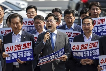 더불어민주당이 대통령실 앞을 찾아 윤석열 대통령의 거부권 행사를 강력 비판했다. 반면 북한이 오물을 담아 한국으로 보낸 '대남 오물 풍선'에 대해서는 침묵했다. 박찬대 원내대표는 29일 서울 용산 대통령실 앞에서 열린 '대통령 수사 외압 의혹과 거부권 행사 규