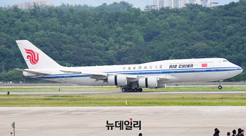 리창 중국 총리가 탑승한 전용기가 한중일 정상회의를 하루 앞둔 26일 오후 경기 성남시 서울공항에 착륙하고 있다. (경기 성남=서성진 기자)