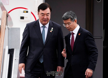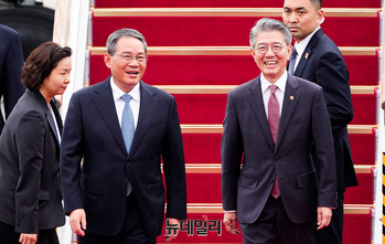 리창 중국 총리와 김홍균 외교부 1차관이 한중일 정상회의를 하루 앞둔 26일 오후 경기 성남시 서울공항에서 이동하고 있다. (경기 성남=서성진 기자)