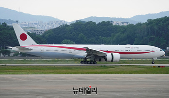 기시다 후미오 일본 총리가 탑승한 전용기가 한중일 정상회의를 하루 앞둔 26일 오후 경기 성남시 서울공항에 착륙하고 있다. (경기 성남=서성진 기자)