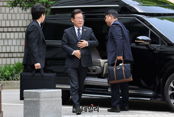 [포토] '대장동·성남FC' 공판 출석하는 이재명 민주당 대표