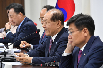 황우여 국민의힘 비상대책위원장이 23일 서울 여의도 중앙당사에서 열린 비상대책위원회의에서 발언하고 있다. 이날 황 위원장은 故 노무현 전 대통령 15주기를 맞아 "노 전 대통령을 깊이 사랑하고 뜻을 받들고자 하는 당의 정신이 있기 때문에 새로운 지도부가 저희들과 함