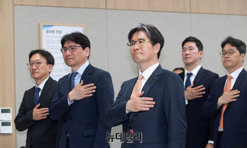 [포토] 국민의례하는 오동운 신임 공수처장