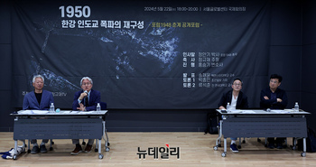 포럼1948 춘계 공개포럼이 22일 오후 서울 종로구 서울글로벌센터에서 '1950 한강 인도교 폭파의 재구성'을 주제로 진행되고 있다. 이번 포럼은 '미 종군기자 3인이 전한 한강다리 폭파 사건'을 주제로 송재윤 캐나다 맥마스터대 교수가 발제를 맡았다. 이어진