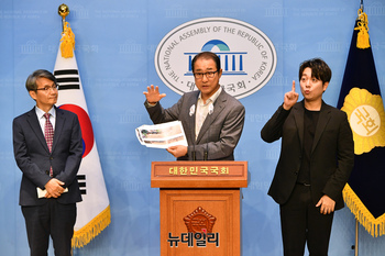 [포토] 대통령식 구조물 관련 회견 하는 이성만·최재영