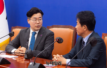 박찬대 더불어민주당 원내대표와 윤종오 진보당 원내대표가 20일 오후 국회에서 접견하고 있다.