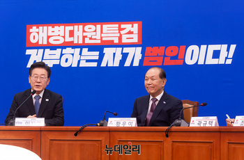 이재명 더불어민주당 대표가 20일 오후 국회 당대표 회의실에서 황우여 국민의힘 비상대책위원장을 접견하며 발언하고 있다.
