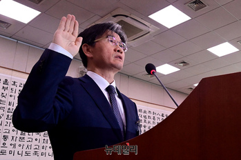 오동운 고위공직자범죄수사처장 후보자가 17일 오전 국회에서 열린 법제사법위원회 인사청문회에서 선서를 하고 있다.