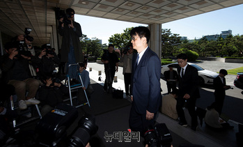 이창수 신임 서울중앙지검장이 16일 오전 서울 서초구 중앙지검에 첫 출근하고 있다.