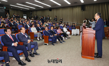 [포토] 기념촬영 하는 추경호 국민의힘 신임 원내대표