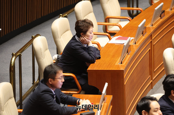 [포토] 정청래 대표석 앉은 이언주 최고위원
