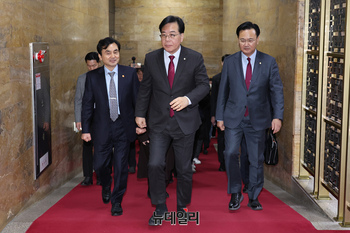 한병도 더불어민주당 원내대표가 4일 국회에서 여야 원내대표 회동을 위해 국회의장실로 향하고 있다.