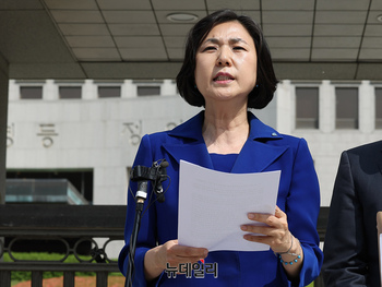 4·10 국회의원선거에서 인천 동·미추홀을에 출마해 낙선한 남영희 전 민주연구원 부원장이 29일 오전 서울 서초구 대법원에서 선거 무효소송을 제기하며 입장을 밝히고 있다. 남 전 부원장은 "선관위 절차상 하자가 명백하며 선거법 178조3항 공표 절차를 완전히