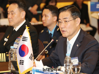 신원식 국방장관이 5일 오전 서울 용산구 국방컨벤션 태극홀에서 열린 '유엔사회원국 주한대사 초청행사'에 참석해 발언하고 있다. (사진=공동취재단)
