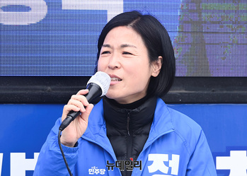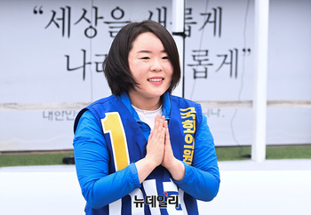 이현 부산진을 후보가 4일 오전 부산역 광장에서 지지를 호소하고 있다. (부산=서성진 기자)