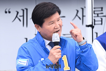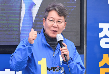 김선동 국민의힘 도봉을 후보가 4일 오전 서울 도봉구 창동성당 앞에서 열린'국민의힘으로 도봉살리기' 한동훈 총괄선대위원장 지원유세에서 지지호소를 하고 있다. 사전투표는 5일과 6일 양일간 오전 6시부터 오후 6시까지 전국에 설치된 사전투표소에서 가능