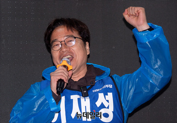 이재명 더불어민주당 상임선대위원장이 3일 오후 부산 서면 젊음의거리 인근에서 열린 더불어민주당 집중유세에서 지지를 호소하고 있다. (부산=서성진 기자)