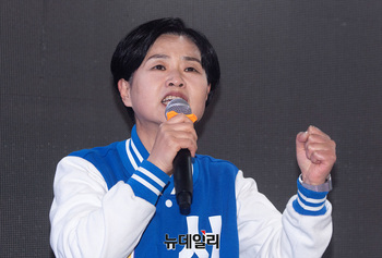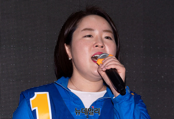 배재정 더불어민주당 부산사상 후보가 3일 오후 부산 서면 젊음의거리 인근에서 열린 더불어민주당 집중유세에서 지지를 호소하고 있다. (부산=서성진 기자)
