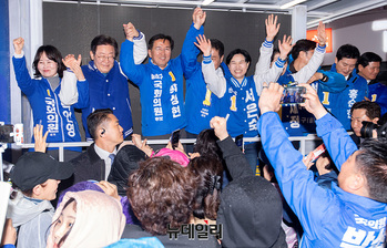 이재명 더불어민주당 상임선대위원장과 부산지역 후보들이 3일 오후 부산 서면 젊음의거리 인근에서 열린 더불어민주당 집중유세에서 시민들에게 인사하고 있다. (부산=서성진 기자)