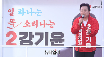강기윤 국민의힘 창원성산 후보가 1일 오후 경남 창원 성산구 반송시장 앞에서 열린 선거유세 현장에서 지지를 호소하고 있다. (경남 창원=서성진 기자)
