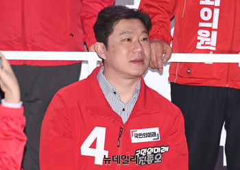 진종오 국민의미래 비례대표 후보가 1일 오후 경남 창원 성산구 반송시장 앞에서 열린 선거유세 현장에 참석해 자리하고 있다. (경남 창원=서성진 기자)