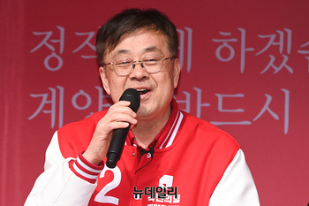최원식 국민의힘 계양갑 후보가 30일 오후 인천 계산역 앞에서 열린 선거유세 현장에서 지지를 호소하고 있다. (인천 계양=서성진 기자)