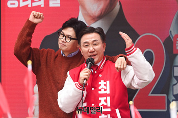 [포토] 한동훈 선거운동 이틀째...양손에 밴드 붙이고 지원유세
