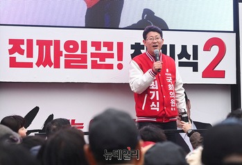 최기식 국민의힘 의왕과천 후보가 29일 오후 경기 의왕시 도깨비시장 앞에서 열린 선거유세 현장에서 지지를 호소하고 있다. (경기 의왕=서성진 기자)