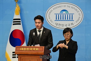 오영환 새로운미래 총괄선대위원장이 21일 오전 국회 소통관에서 22대 총선 새로운 미래 '미래준비' 공약 발표 기자회견에 앞서 이종섭 호주대사 귀국 관련 비판을 하고 있다.이날 오 위원장은 "이종섭 장관의 귀국 소식이 들려오고 있지만, 결코 국민께서 분노한 문제의 근본