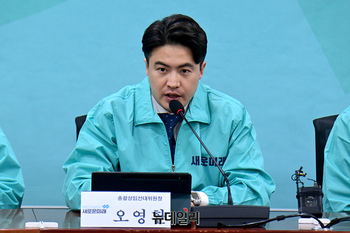 오영환 새로운미래 총괄상임선거대책위원장이 18일 오전 국회 의원회관에서 열린 선대위 2차 회의에서 모두발언을 하고 있다.