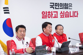 윤재옥 국민의힘 공동선거대책위원장이 18일 오전 서울 여의도 중앙당사에서 열린 중앙선거대책위원회의에서 모두발언을 하고 있다.