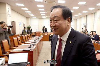 한기호 국방위원장이 15일 오전 국회에서 열린 '이종섭 전 국방부장관의 해병대원 사망사건 수사은폐의혹' 등 안건에 대한 국방위원회 전체회의에서 김병주 야당 간사에게 위원장 권한을 위임한 후 퇴장하고 있다. 이 날 한 위원장은 "채상병 수사는 이미 경찰에 이첩돼 수사