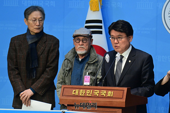 황운하 조국혁신당 의원이 14일 국회 소통관에서 열린 문화예술인 조국혁신당 지지 선언 기자회견에서 발언을 하고 있다.