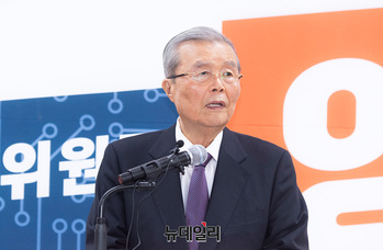 김종인 개혁신당 공천관리위원장이 13일 오전 경기 용인시 양향자 예비후보 선거사무소에서 열린 개소식에 참석하고 있다. (경기 용인=서성진 기자)