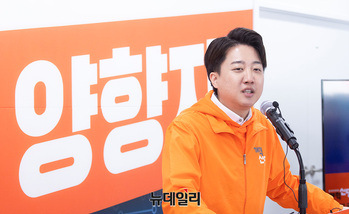 이준석 개혁신당 대표가 13일 오전 경기 용인시 양향자 용인갑 예비후보 선거사무소에서 열린 개소식에서 축사를 하고 있다. (경기 용인=서성진 기자)