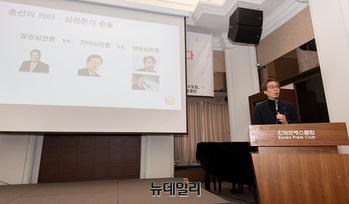 황승연 굿소사이어티조사연구소 대표가 12일 오전 서울 중구 프레스센터에서 열린 '국가전략 씽크탱크 대토론회'에서 발표하고 있다.이날 토론회는 유일호 안민정책포럼 이사장이 기조연설을, 박명호 안민정책포럼 회장과 황승연 굿소사이어티조사연구소 대표가 발표를 맡았다.이어진 토