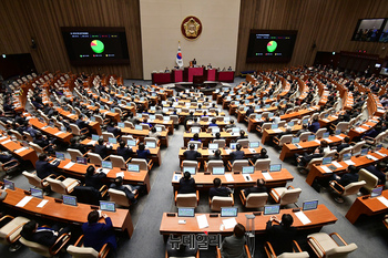 신숙희·엄상필 대법관 후보자에 대한 임명동의안이 29일 국회에서 열린 본회의에서 통과되고 있다.