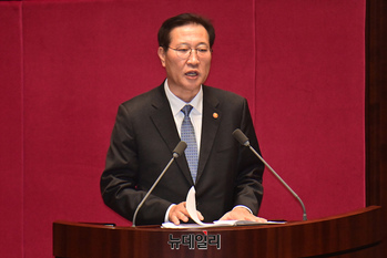 박성제 법무부 장관이 29일 오후 국회 본회의에서 화천대유 뇌물 의혹 사건의 진상규명을 위한 특별검사의 임명 등에 관한 법률안 재의의건, 대통령 배우자 김건희의 도이치모터스 주가조작 의혹 진상규명을 위한 특별검사 임명 등에 관한 법률안 재의건에 대한 재의 요구 이유 설