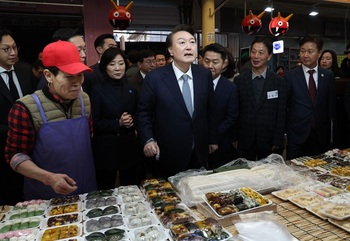 尹, 설 명절 앞두고 전통시장 방문…상인·시민들과 설 인사