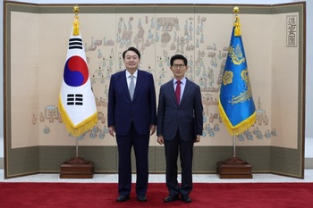 윤석열 대통령이 6일 경제사회노동위원회 위원들과 오찬을 함께하며 "노사문제는 이 사회의 '지속가능성'이라는 틀에서 논의돼야 한다"고 강조했다.윤 대통령은 이날 오전 경사노위 본위원회 개최를 보고받은 뒤 용산 대통령실로 위원들을 초청해 오찬 간담회를 가졌다고 김수경 대통