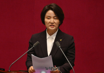 이은주 정의당 의원이 25일 국회에서 열린 본회의에서 의원직을 사퇴 신상발언을 하고 있다.