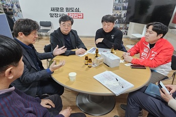 [포토] 대학생 간담회 참석한 윤도현 국민의힘 비대위원