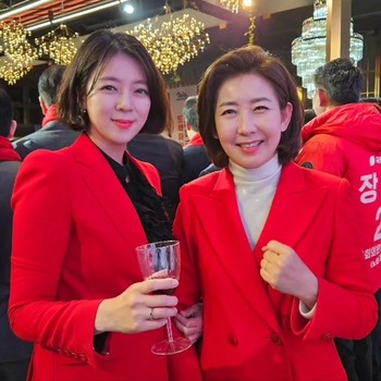배현진 국민의힘 의원이 총선을 앞두고 나경원 전 의원과의 '투샷'(둘이 나란히 찍은 사진)을 자신의 SNS에 올렸다.배 의원은 19일 페이스북과 인스타그램에 유리잔을 든 자신과 주먹을 쥐고 '화이팅' 자세를 취하는 나 전 의원의 모습을 찍은 사진을 게시했다. 지난 17