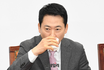 장동혁 국민의힘 대표가 9일 오전 국회에서 열린 최고위원회의에서 물을 마시고 있다.