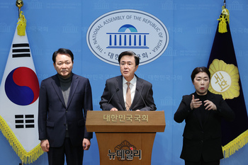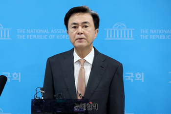 김태흠 충남도지사가 9일 오전 국회 소통관에서 국회의 일방적 행정통합 추진을 반대하는 기자회견을 하고 있다.