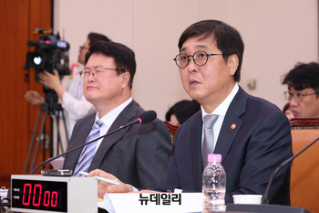 최휘영 문화체육관광부 장관이 27일 국회에서 열린 문화체육관광위원회 전체회의에서 의원 질의에 답하고 있다.