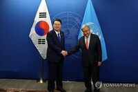 尹, 구테흐스 유엔사무총장 만나 "북한 도발 방지 위해 협력"
