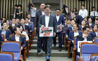 더불어민주당이 윤석열 대통령에게 '채상병 순직사건' 수사 외압을 행사했다는 의혹을 받는 이종섭 국방부장관 해임을 건의했다. 이를 받아들이지 않으면 탄핵을 추진하겠다는 방침이다. 민주당은 8일 국회에서 의원총회를 열고 윤석열 정부의 국정기조 전환과 내각 전면 쇄